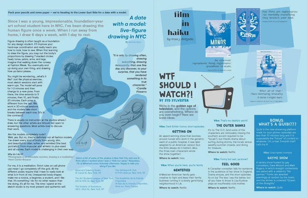 Circa is a collaborative zine at minds + assembly. Every quarter, any employee can either contribute to the zine or lay out an assigned spread. Each zine has a different writing + color theme. Prior to March 2020, each issue was also risograph printed.